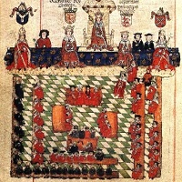 Les Échecs (ou chatarunga) firent leur apparition en Europe aux alentours de l’an mille, rapportés de Perse par les seigneurs arabes d’Espagne et sans doute également par les Croisés à leur retour d’Orient.