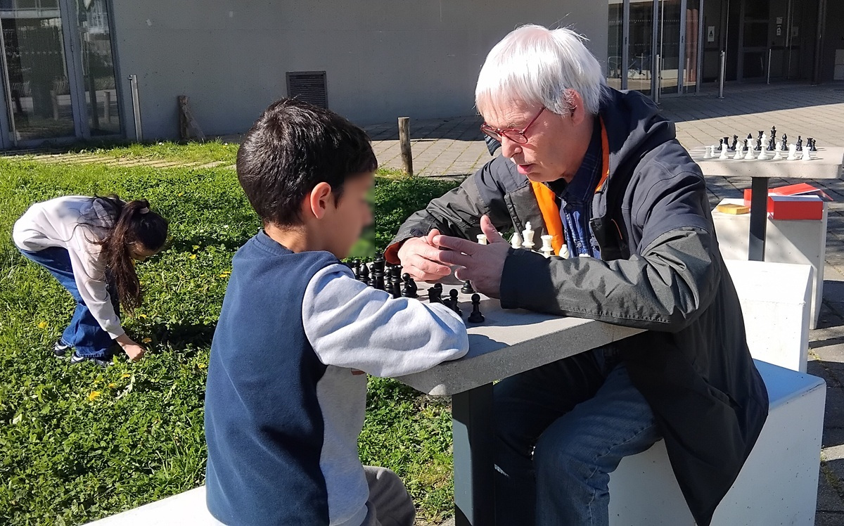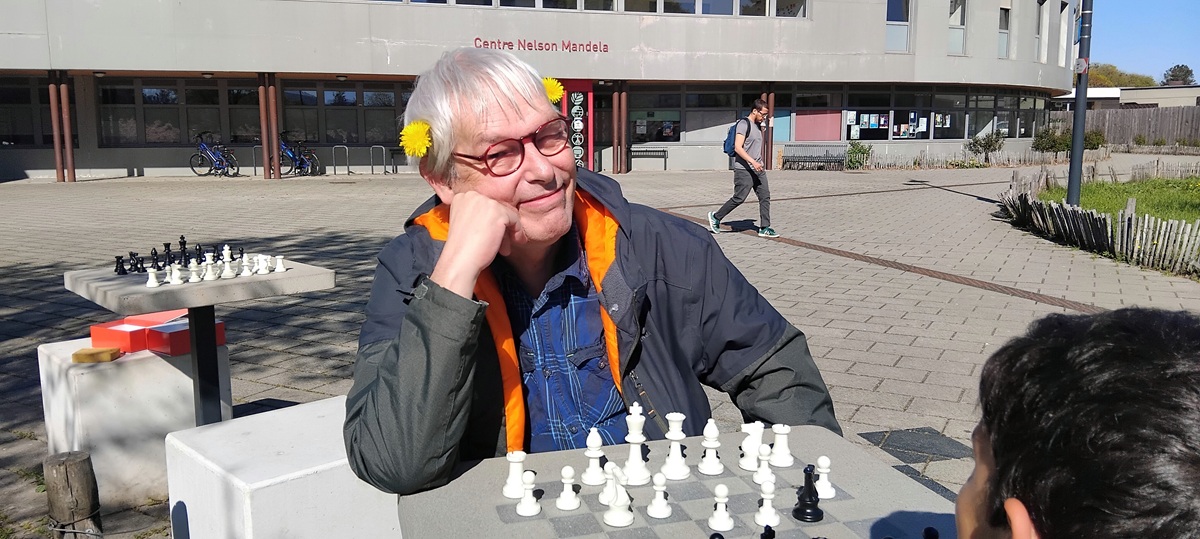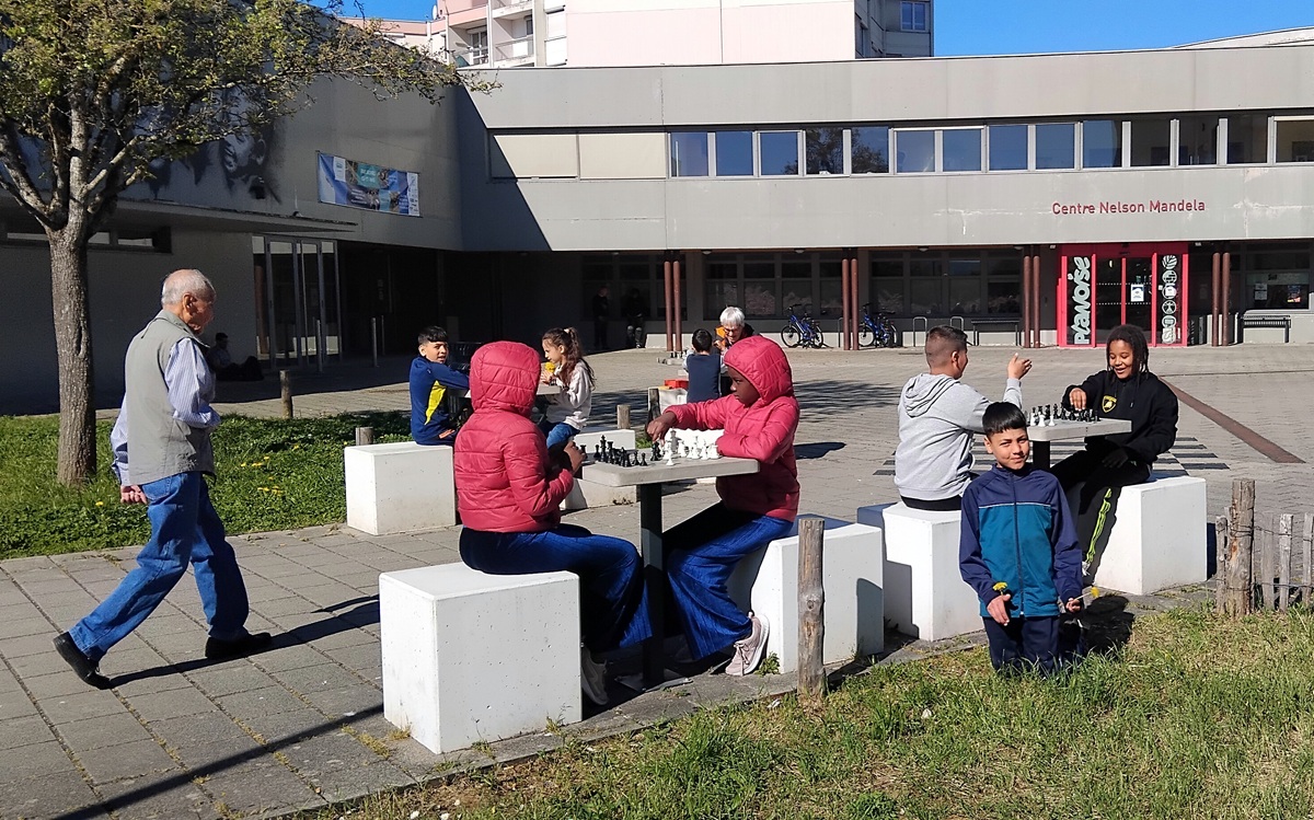 Le beau temps printanier nous a offert une belle opportunité d’élargir encore cette expérience : nous avons pu organiser des moments d’échecs buissonniers en nous installant sur le parvis, profitant pleinement des tables installées en mai 2025. Un cadre agréable et ouvert, qui nous offre également plus de visibilité. Ryad, un ex joueur de club, nous découvre et nous promet de nous rendre bientôt visite.