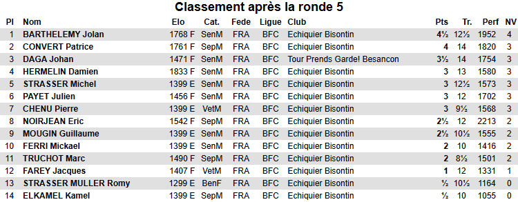 5 2 CHENU Pierre 1399 E 1 – 0 FAREY Jacques 1407 F 1